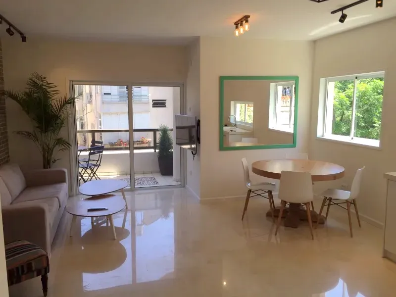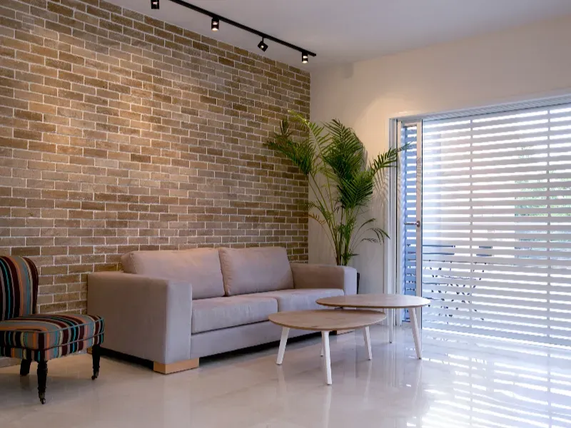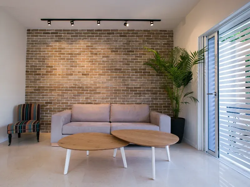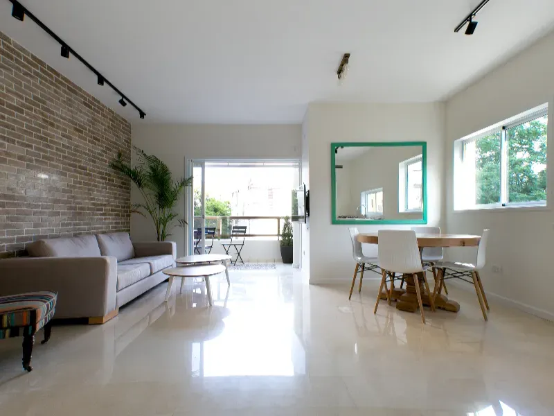 דירת 4 חדרים בעיצוב מרשים, עבודות שיש וליטוש, עץ מטפס על הקירות וקירות בריקים שמוסיפים אופי וחום.